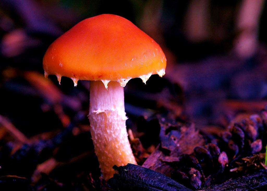 “Hogwash!” he cried out, suddenly looking down at the ground and seeing the smiling face of a mushroom with an orange cap and a thick ivory stalk.