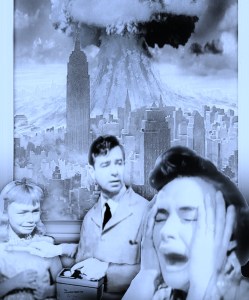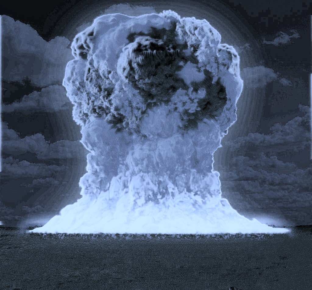 Then the bomb hit. A blooming blue wild mushroom leapt skyward on the horizon like in a nightmare. The sun turned purple. Trees bent. The house shook and the boy stumbled backward. He fell, hit his head, and went to sleep.