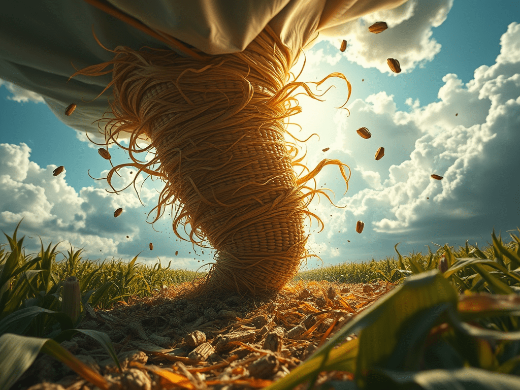 I decipher the angst of the world, glyphs sketched on the stalks as I make my way through the cornfield. A green maze that smells like earth, looming tall. Revenant soldiers are haunting hallways as I scrawl, crawl through time and space. The world is windowless. The wind lathered by a storm. The sky above turns gray, the stalks begin to sway. Bruises erupt up above, dark Goliaths flexing power, instilling fear. A tornadic maelstrom has come to change the day.