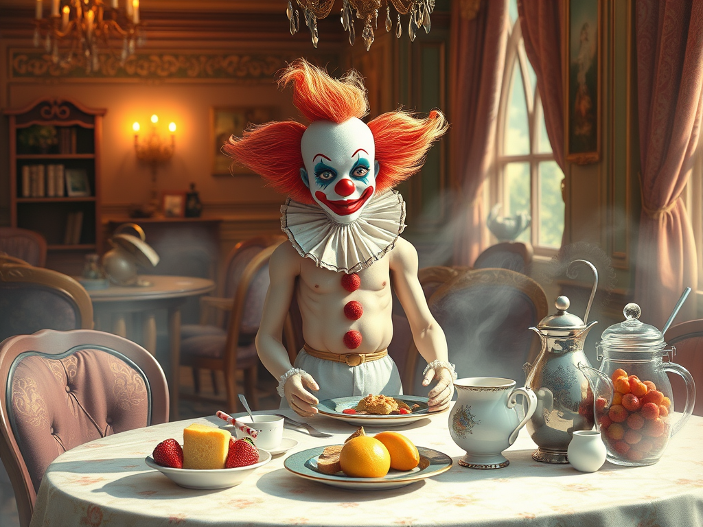 “What the hell, dude! You got syrup in my hair. Don’t you know how important a clown’s hair is?”