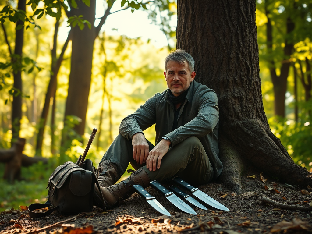 He sat up and put his back against a tree trunk. It was quiet out in the woods. He liked that. He looked down at his satchel of fine knives and wondered what he’d do with them now. But then he thought that they might come in handy if he was going to live in the woods forever now. He gathered his things, took a deep breath, and walked toward his uncertain future.