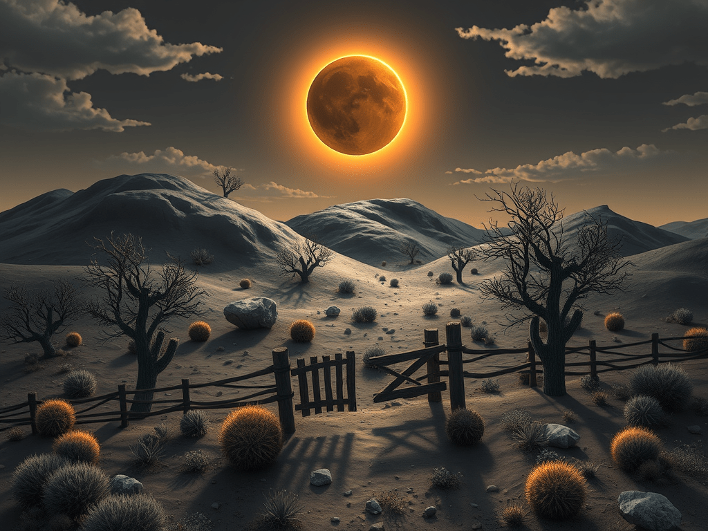 A lingering solar eclipse buttons the sky