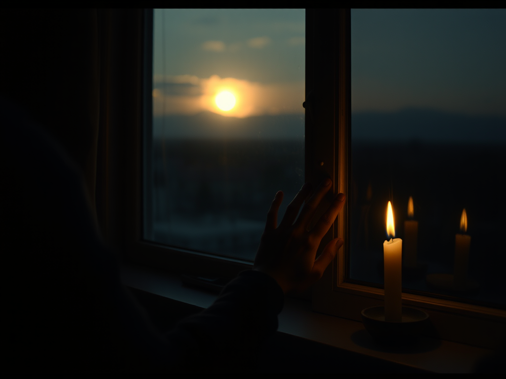 Of this dark place, where I sit in front of the window, a candle flame
