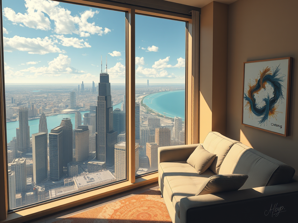 I surrender to the sun. Empty and nauseous. Dizzying heights in downtown Chicago. A pretty escape beckons. The lake out there a diamond blue. An apartment of glass, silent in the afternoon. A couch, a table, a pile of bullets. Too late now, you’re already three-quarters through. A piece of artwork on the wall is called Scattering. The city below is crawling like a machine. Everyone has somewhere to go. But why? Stand still in front of a window in a high-rise apartment building and look down instead. Stop moving. Stop panting. Stop ripping your soul out… Now what do I do?